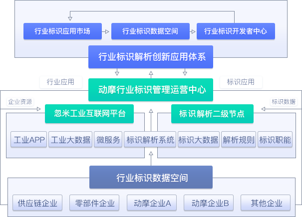 动摩(摩托车与动力装备,以下简称动摩)行业标识解析建设整体架构与国家标识解析整体部属架构一致,由三部分组成:国家顶级节点、二级节点、企业节点