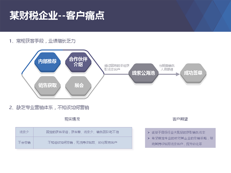 客源少,信息单一:客户信息获取难,不精准,数量少